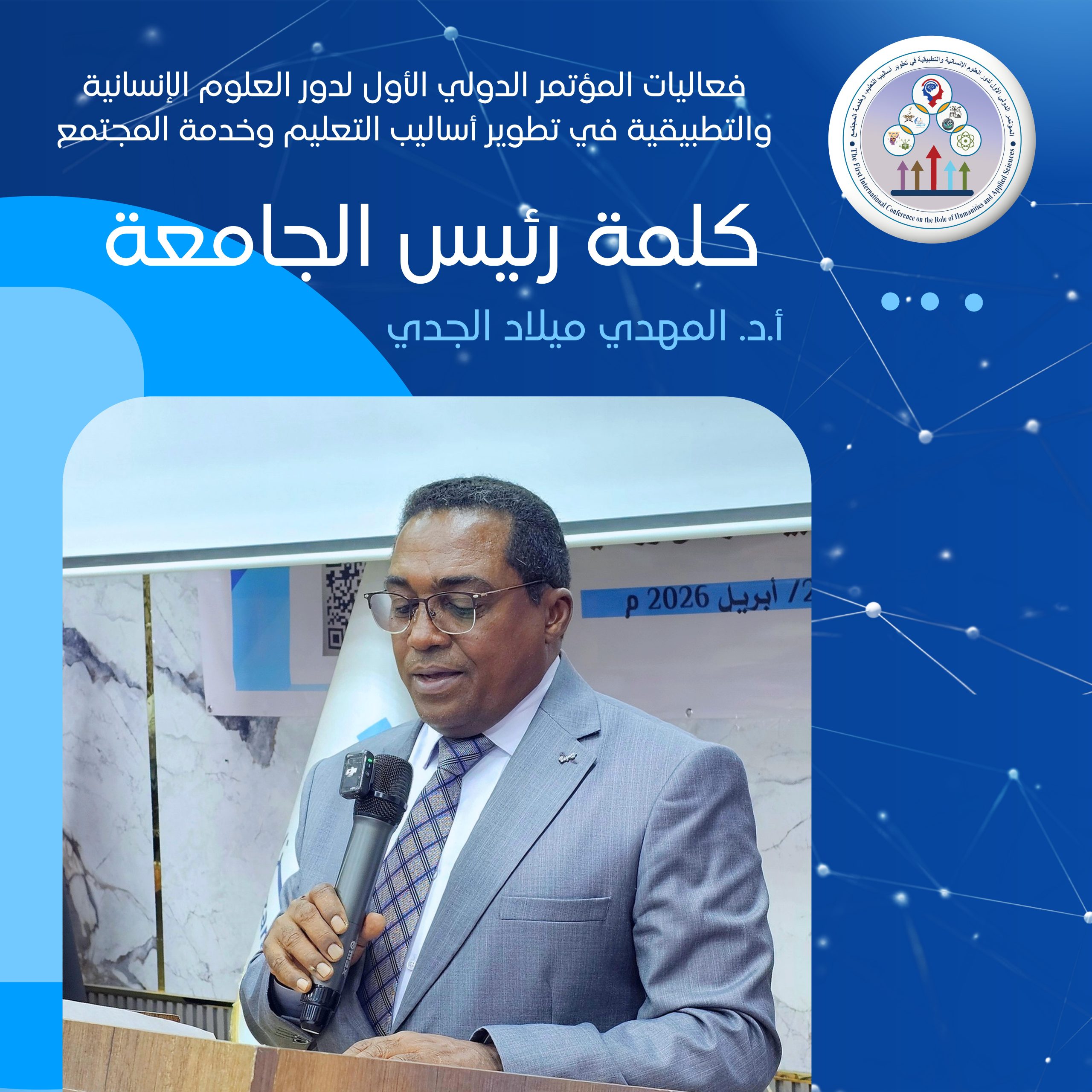 جامعة فزان. كلمة رئيس اللجنة العلمية للمؤتمر الدولي الأول حول العلوم الإنسانية والتطبيقية في تطوير أساليب التعليم وخدمة المجتمع. الثلاثاء – (21-4-2026م). ● نص كلمة أ.د.عبدالقادر…