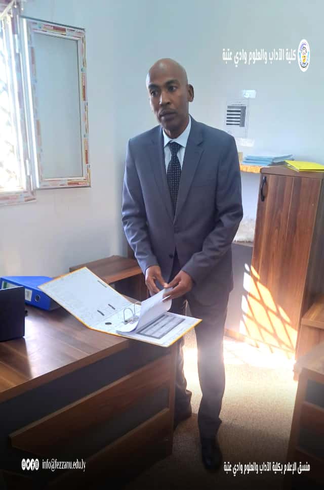 ● في إطار متابعته لسير العملية التعليمية بكليات الجامعة،…قام أ.د. إبراهيم المهدي أحمد وكيل الشؤون العلمية بالجامعة بزيارة تفقدية إلى كلية الآداب والعلوم – وادي عتبة – حيث استقبله د.نور الدين الباشا وكيل الشؤون العلمية بالكلية، وعدد من أعضاء هيئة التدريس، ورؤساء الأقسام العلمية.