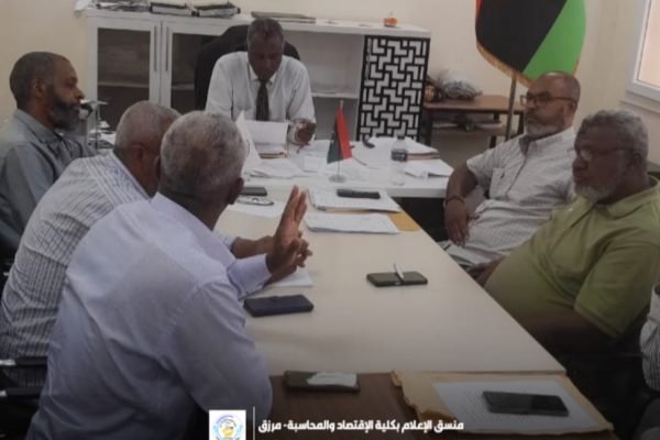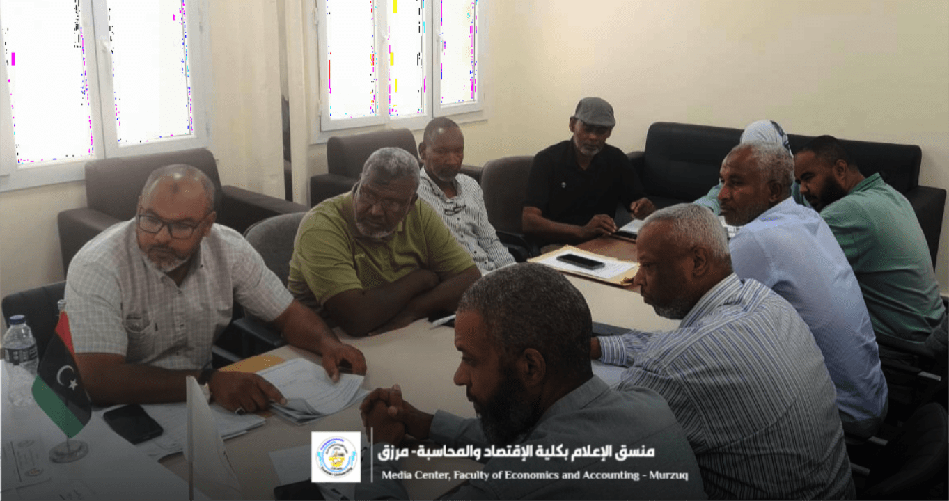 ● عقد مجلس كلية الاقتصاد والمحاسبة مرزق صباح يوم الأربعاء، الموافق (17-9-2025م) في مقر الكلية الاجتماع الدوري الثامن للعام الجاري (2025م) برئاسة أ.د يوسف ممدو حميدي عميد الكلية، وبحضور د.إبراهيم أحمد باب الله وكيل الشؤون العلمية، ورؤساء الأقسام العلمية،والمسجل، ومديري المكاتب والإدارات،ورؤساء الأقسام العلمية بالكلية.