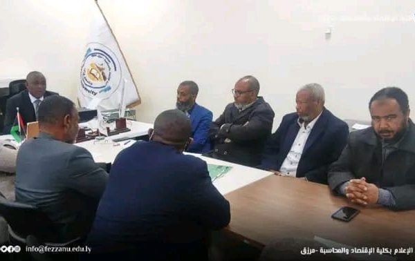 الموافق (13-1-2026م) على تمام الساعة (10:00) صباحًا في مكتب العميد بمقر الكلية المؤقت بمدينة – مرزق – الاجتماع الدوري الأول للمجلس للعام الجاري (2026م) برئاسة أ.د. يوسف ممدو حميدي عميد الكلية، وبحضور د. إبراهيم أحمد باب الله وكيل الشؤون العلمية، والمسجل العام، ورؤساء الأقسام العلمية، ومديري المكاتب والإدارات.