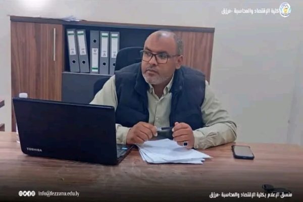 ● عقد قسم الاقتصاد بكلية الاقتصاد والمحاسبة – مرزق – صباح اليوم الاثنين الموافق (16-2-2026م) في مقر الكلية المؤقت الاجتماع الدوري الثالث للعام الجاري (2026م) برئاسة د.مصطفى بوعائشة، رئيس القسم، وبحضور أعضاء هيئة التدريس بالقسم كافة.