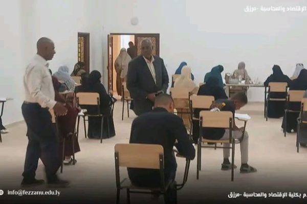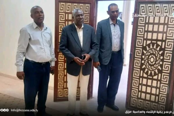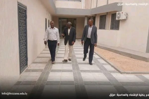 في إطار المتابعة المستمرة لسير العملية التعليمية والإدارية، قام الأستاذ السنوسي محمد صالح، الكاتب العام بجامعة فزان، صباح أمس الثلاثاء الموافق (14-4-2026م) بزيارة تفقدية إلى كلية الاقتصاد والمحاسبة بمدينة – مرزق – وكان في استقباله أ.د يوسف ممدو حميدي، عميد الكلية، و د. علي أحمد المهدي، مدير مكتب الدراسات العليا.