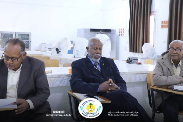 ● عقد قسم الأحياء بكلية التربية – تراغن – صباح يوم الأربعاء، الموافق (7-1-2026م) في معمل النبات بالكلية جلسة علمية لمناقشة بحث التخرج لإحدى طالبات القسم في مرحلة البكالوريوس.