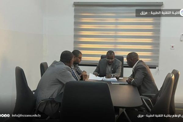 كلية التقنية الطبية، جامعة فزان. كلية التقنية الطبية تعقد اجتماعا لمناقشة مقترح فتح قسم العلاج الطبيعي. ● عُقد صباح اليوم