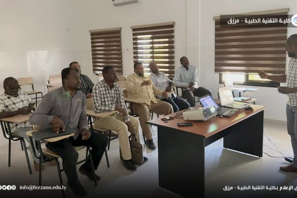 مناقشة بحوث التخرج في الأقسام العلمية بكلية التقنية الطبية – مرزق. ● في إطار جهود كلية التقنية الطبية مرزق؛ لتأهيل