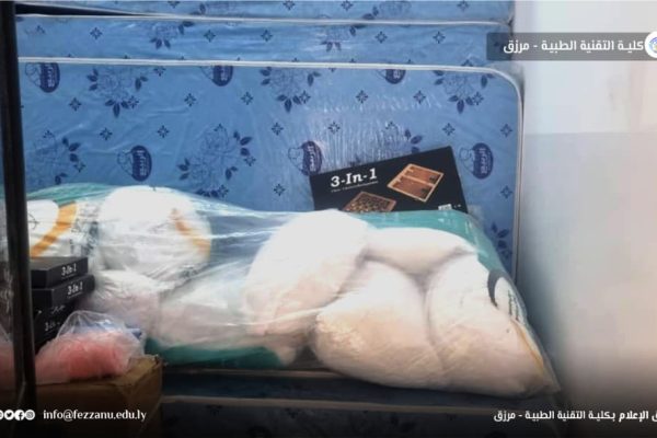 ● في إطار حرص صندوق التنمية وإعادة إعمار ليبيا مع كلية التقنية الطبية على توفيرهما لبيئة مريحة ومتكاملة للطالبات داخل السكن الداخلي،…تسلم الدكتور مؤمن عابدو الخير، عميد الكلية صباح يوم الأحد الموافق (19-10- 2025م) مجموعة من المفروشات والمعدات الرياضية الخاصة بالسكن الداخلي للطالبات، وذلك من المهندس محمود الأمين ممثل صندوق التنمية وإعادة إعمار ليبيا، في خطوة تأتي لتعزيز راحة الطالبات وتحسين جودة حياتهن الدراسية.