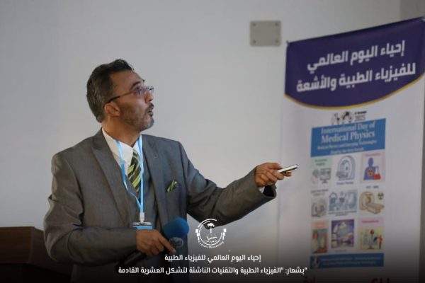 ● بشعار: “الفيزياء الطبية والتقنيات الناشئة لتشكل العشرية القادمة”، وبرعاية جامعة فزان وكلية التقنية الطبية، نظّم قسم الأشعة بكلية التقنية الطبية – مرزق – صباح اليوم الأحد الموافق (2025/11/9م) احتفالية باليوم العالمي للفيزياء الطبية في قاعة محمد جمعة بمقر الكلية بحضور: أ.د. إبراهيم المهدي أحمد، وكيل الشؤون العلمية بالجامعة، أ. السنوسي محمد صالح، الكاتب العام بالجامعة، وعدد من عمداء الكليات، وممثلي النقابة العامة للفيزياء الطبية، وأعضاء هيئة التدريس، والمهتمين بمجال الفيزياء الطبية.