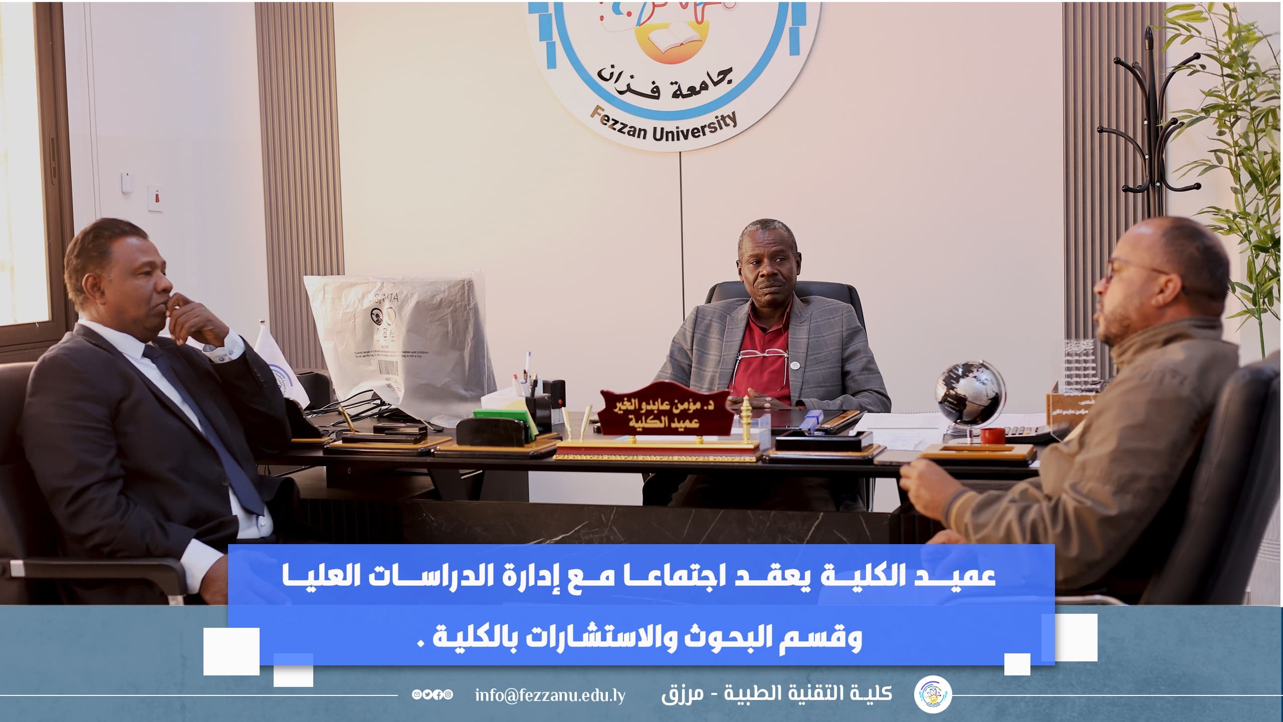 ● يذكر أن هذا الاجتماع يأتي في إطار حرص الكلية على تعزيز مسارات البحث العلمي، وتطوير برامج الدراسات العليا للارتقاء بالأداء الأكاديمي، وتوفير فرص علمية متقدمة لطلبة جامعة فزان.