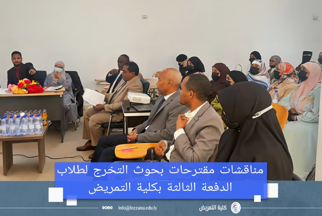 مناقشة مقترحات بحوث التخرج لطلبة الدفعة الثالثة بكلية التمريض.